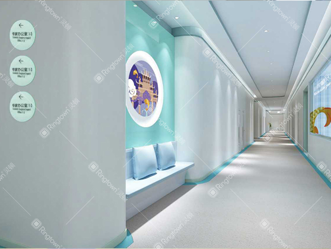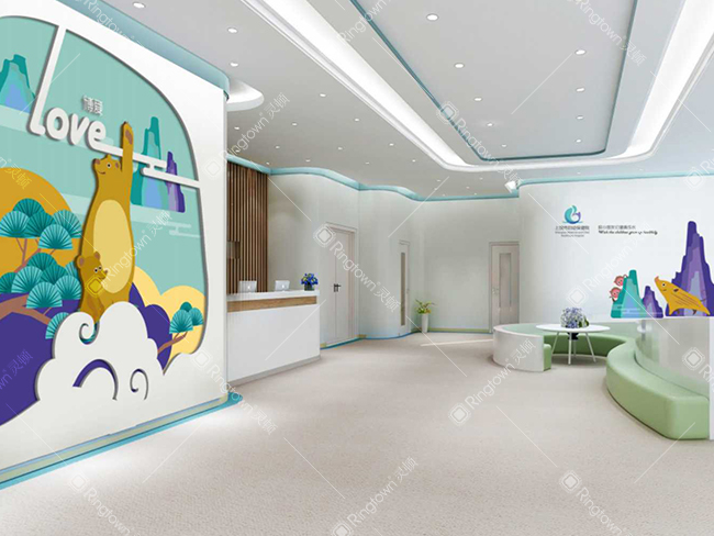 环境图形设计从上饶的地域生态和文脉中提取了锦鲤、红鹅、鸳鸯、藏酉猴等丰富的元素,构成妇保院独特有趣的IP形象,在亮化空间的同时,给患者带来了自然质朴的艺术熏陶和轻松愉悦的心理感受。