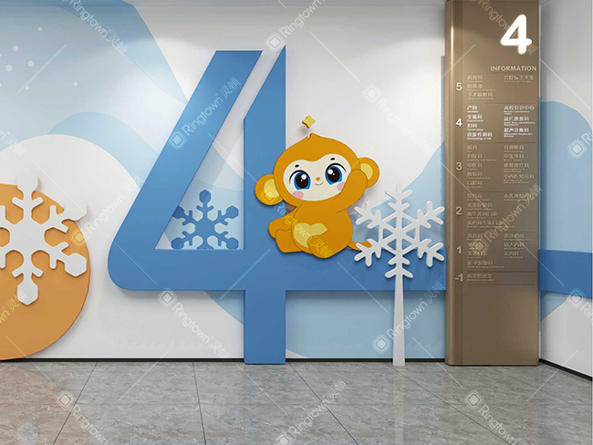 西北妇女儿童医院的吉祥物从秦岭而来,是一只具有治愈超能力的金丝猴,名叫金仔仔,它头上的星星和眼里的星光可以治愈患者的疾病,长长的手臂给患者以安慰,它让小患者不再惧怕苦涩的药片、冰冷的听诊器,积极配合治疗。让恐惧的就诊体验变成一段有趣的旅程,设计成为了非医疗的手段,产生了积极的治疗效果。