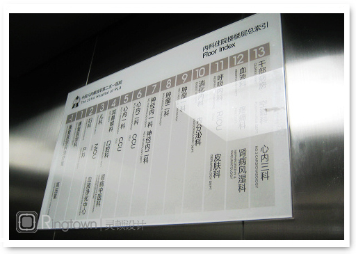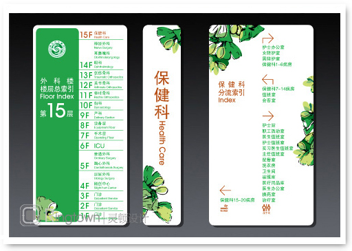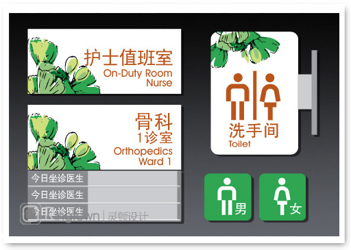 我们特意做了一套适用于医院各个科室直观的小符号,符号造型别致,非常形象美观地向人展示了这个科室的功能定位。