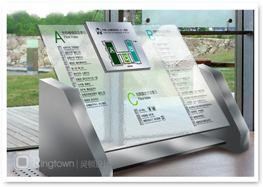 山东潍坊中医院新住院大楼在每一层都设立了被郁郁葱葱的植物覆盖的小中庭,中庭跨度15m,设有流水、花草、矮树。做方案时,我们利用银杏叶、花、果的种种优美姿态,将其作为主要环境识别图形,巧妙地应用在医院整体导向系统当中。绿色健康、富有现代感的图形与医院楼内大面积的绿化有机地呼应,营造出一个清新自然、充满生机的绿色氛围,与医院“创建生态院容”的管理理念有机契合。有“活化石”之称银杏是一味重要中药,很多花、果也都能入药,图形选择也符合中医院的定位。