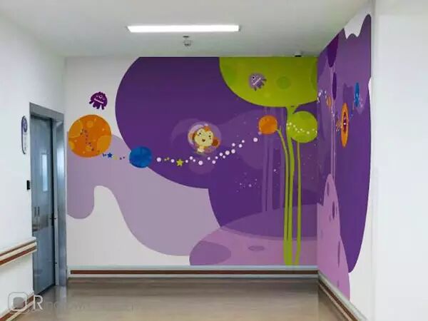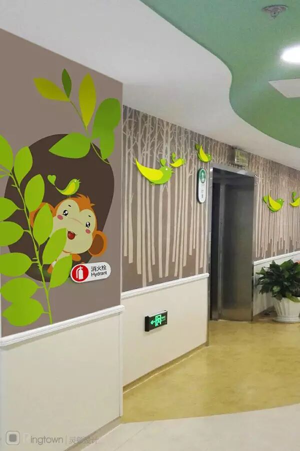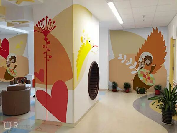 设计师根据儿童的“泛灵心理”创造了拟人化的动植物与患儿产生互动,绘画风格大胆而富有幻想,意图用这些充满活力的画面营造出恢复与生长的概念氛围,让孩子们每天都能从墙壁上挖掘出新的元素。
