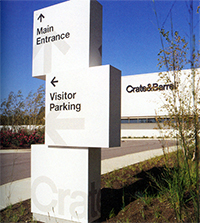 建筑物比较高大,那么我们在设计时,它的户外立地导向标识的高和宽都远远超过了这个规范中的最大值。这就好比,在一个村庄里,主干道只能通行大卡车,街道平时多是步行或者骑自行车、摩托车的人,街道窄、人群行进速度偏慢,如果在这个村里竖立一个麦当劳的户外标识必然不用和北京三环边的麦当劳户外标识等高。你可以想象,对于一个步行的人与开着80迈的车上司机而言,事物在他们眼中停留的时间不同。要想事物在不同行进速度的人眼中停留的时间相同,事物的尺寸、造型和颜色要求必然不同。一般来说,周围建筑物的高度、所处道路的宽度、行进人的速度、与周围环境的风格和造型协调等,这些共同决定了标识采用什么样的尺寸、造型和颜色。”