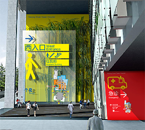 “我国建筑设计的起步较晚,欧美发达国家,新加坡,香港的设计水平和设计理念都领先于大陆地区。我们可以看到他们都非常注重在建筑中加入设计元素,很多细节处极其彰显巧思,趣味性和观赏性浓厚。体现在医院导引系统设计里,他们注重造型和平面的设计,趣味丛生,颜色多样,精彩纷呈。如今,社会已然发展到二十一世纪了,人们对个性化的要求以及医院自身加强人性化的需求,共同决定了在导向系统中加入设计元素是与时俱进的举措。”