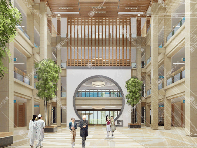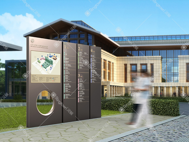 基于 “一带两园三区” 的功能布局,导视系统的规划充分考量患者需求,通过科学合理的动线设计,有效优化就医路径,切实解决患者 “跑断腿” 的痛点,实现导视功能与美学价值的完美统一,为患者打造兼具清晰高效与人文温度的就医环境。