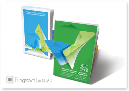 在北京安定医院的VI应用设计中,这套简约的设计,恬静、不绚烂、不浮华,“山水”的灵感通过极简的设计手法体现出来。将院徽通过三维立体的表现形式运用在各种用品中,充满情趣,营造出一幅山峦起伏、云雾缭绕的景象,使画面产生了一份空间意境,像极了一幅安静的中国水墨画,灵动简约的现代气息跃然纸上。整体设计既简洁平静,又符合医院对患者的呵护之意,力求达到与患者心灵互通,抚慰心绪,充满爱的力量。