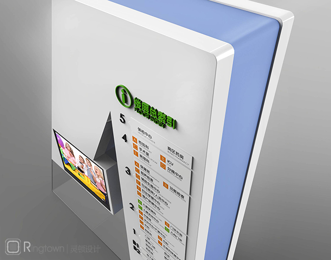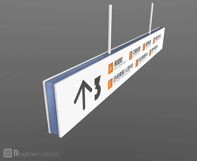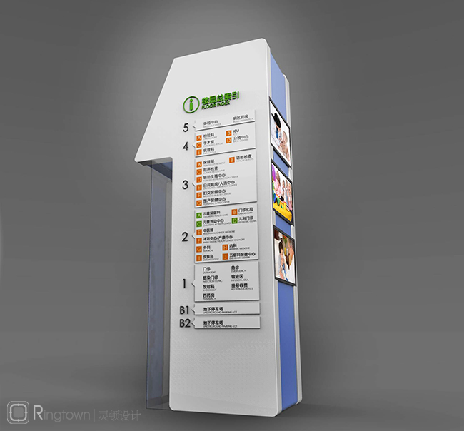 灵顿创新性的突破传统标识设计,将导视系统与空间结合,将指路功能与景观结合,利用医院空间进行大尺度文字符号图案设计,达到明确、清晰、易识别的目的,空间处理充满想象力。