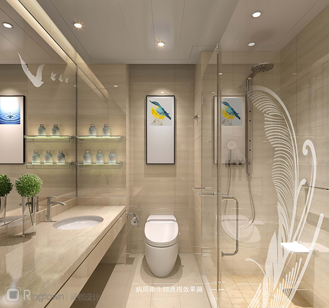 ▲妇科环境图形系统别出心裁地采用了以羽毛与植物相结合,体现现代女性气质