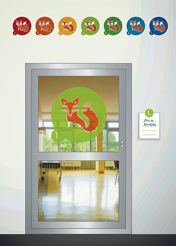 图5 是国外一家儿童医院,设计师在设计导向系统时充分考虑到儿童的心理因素以及感知能力,别出心裁地把每个科室的门牌设计成不同的可爱动物,由于儿童对于图形的敏感度远远要高于数字,这样的形式比单一的字母表达方式容易让儿童接受。